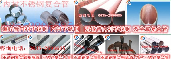 山西內(nèi)襯不銹鋼復(fù)合管、山西內(nèi)襯不銹鋼復(fù)合管廠(chǎng)家、山西不銹鋼復(fù)合管現(xiàn)貨、山西雙金屬?gòu)?fù)合管、陜西不銹鋼復(fù)合管、陜西不銹鋼復(fù)合管廠(chǎng)家-山東飛龍有限公司是國(guó)內(nèi)最大一家研發(fā)制造內(nèi)襯不銹鋼復(fù)合管材、管件的大型高科技企業(yè),廠(chǎng)房面積20萬(wàn)平方米、28條生產(chǎn)線(xiàn),員工1000人,年產(chǎn)內(nèi)襯不銹鋼復(fù)合管及管件35萬(wàn)噸。 內(nèi)襯不銹鋼復(fù)合管具有耐高溫、耐低溫、耐腐蝕、不生銹、抗高壓、防爆裂、食品級(jí)衛(wèi)生標(biāo)準(zhǔn)、使用壽命70年以上等特點(diǎn)被廣泛應(yīng)用到建筑、自來(lái)水、消防、石油、化工、醫(yī)藥、蒸汽、暖通等領(lǐng)域。誠(chéng)招全國(guó)各地區(qū)代理、經(jīng)銷(xiāo)商。